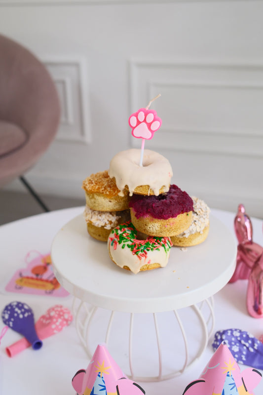 combo cumpleaños perro caja dognuts x 6 unidades + decoración de fiesta