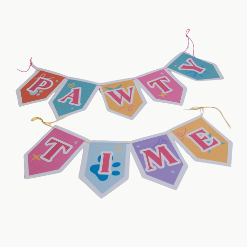 Diseño exclusivo de Pet Brunch, elaborados en cartón, resistente, ubicar en la pared o como decoración en tus fondos o mesa , mensaje PAWTY TIME, medida aproximada 1.5M