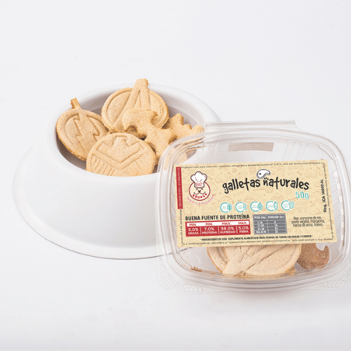 50 gr de galleta, incluye 5 unidades, presentación recipiente plástico con tapa. Con antioxidantes naturales, libres de químicos, transgénicos y gluten. 100% natural y apta para el consumo humano. Receta para todas las edades, buen aporte de proteína, fibra, omegas y es de mordida suave. "Solo su aroma te enloquecerá"